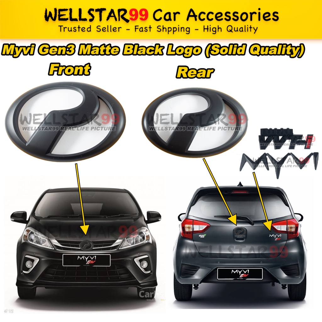 New Perodua Myvi 2018 To 2020 Matte Black Vvt Myvi Front And Rear Logo Aaa Quality 1pcs Logo Hitam 黑色 Logo Shopee Malaysia
